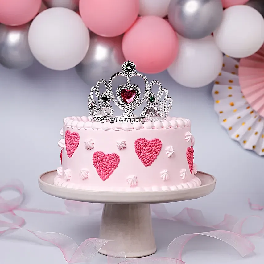 Delight your little royal with this enchanting 1-kg pink strawberry cake! Adorned with delicate frosting, textured pink hearts, and a sparkling silver crown topper, it’s a fairy tale come to life. The soft strawberry-flavored sponge is layered with luscious cream, making each bite a sweet dream. Perfect for birthdays, baby showers, or princess-themed parties—this cake is all about magic, love, and unforgettable memories.