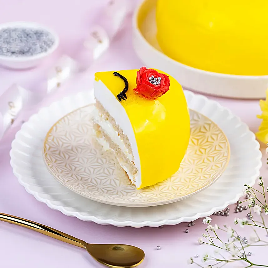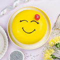 This vibrant yellow cake is as cheerful as it is delicious! Designed like a smiley emoji with charming eyelash details and a cute red edible flower, it’s layered with soft vanilla sponge and refreshing pineapple cream. Whether you're saying "thank you," "congrats," or just want to brighten someone’s day—this cake delivers happiness in every bite.